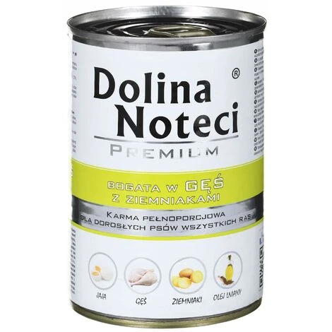 Komplettes Futter mit Gans und Kartoffeln für erwachsene Hunde mittlerer und großer Rassen. Um das Wohlbefinden des Hundes zu gewährleisten, lohnt es sich, ihm eine richtig zusammengestellte Mahlzeit zu geben. Dolina Noteci Premium-Futter, reich an Gänsen mit Kartoffeln, ist eine Schatzkammer mit vielen Zutaten, Mineralien und Fetten, die für den guten Zustand und die Gesundheit des Hundes notwendig sind. Die Hauptvorteile des Produkts: Enthält Eisen und Selen – Mineralien, die eine ordnungsgemäße Blutfunktion gewährleisten. Gans ist eine wertvolle Quelle für Aminosäuren, Methionin und Cystein. Gänsefett enthält mehrfach ungesättigte Fettsäuren aus der n-Familie -6. Kartoffeln enthalten Vitamine A, Gruppe B (B1, B2, B3, B6), PP und viel Vitamin C. Kartoffeln enthalten auch Kalium, Magnesium, Kalzium, Eisen und Phosphor. Darüber hinaus enthalten sie viel Ballaststoffe. Sie senken den Cholesterinspiegel und verbessern den Stoffwechsel. Produkt des polnischen Herstellers