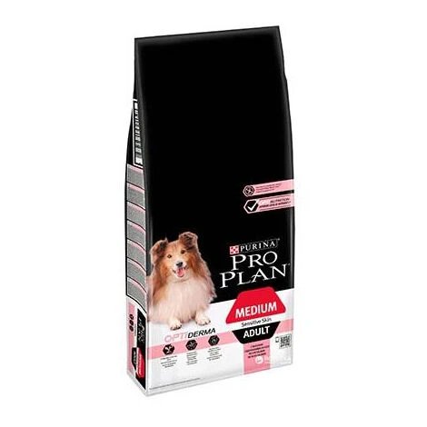 Essen Purina¬ Pro Plan¬ Medium Adult empfindliche Haut mit Optiderma¬ reich an lachsempfindlichen,