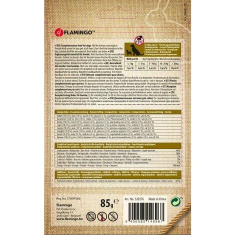 zusammensetzung: Kaninchen (78,8 %), Ente (10 %), Stärke (4 %), Glycerin (3 %), pflanzliches Eiweiß (2 %), Sorbit (2 %), Salz (0,2 %)