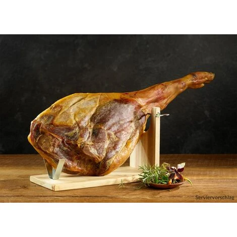 Der luftgetrocknete spanische Schinken ist eine traditionelle Spezialität. Der außergewöhnliche Serrano Schinken von der Vorderkeule ist bis zu 10 Monate in Spanien unter ursprünglichen Bedingungen gereift. Während dieser Reifephase entsteht der bekannte und delikate Geschmack des Schinkens.