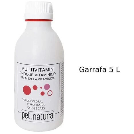 5 -Liter Carafe von multivitamidischem Petnatura. Komplement_res Essen fÙr Hunde und Katzen, die einen vitamistischen Schock erm_glichen. Dieser multivitamale Komplex fÙr Hunde und Katzen, der als biologischer Alarm auf den K_rper wirkt, der die Metabinprozesse von Tieren stimuliert. Es erleichtert die Verkalkung der gebrochenen Knochen, die korrekte Entwicklung der Welpen, den gr_¤eren Widerstand der Tiere und eine gr_¤ere Dicke und Lebensf_higkeit der Knochen. Vitamistische M_ngel manifestieren sich als Schw_che, Asthenie, Nervosit_t, Gelenkschmerzen, Module und Nerven, Haut- und Haardefekte, Frakturen, Verschlechterung der Zahn (Krankheit, Geburt, Schwangerschaft, Riss und W_rme, Unf_lle, bertragungen, Hausver_nderungen, Absetzungen, Ern_hrungs_nderungen, unzureichende Stillzeit oder vorzeitiger Ab entweder ungew_hnlicher k_rperlicher Anstrengung. Dosierung und Besch_ftigungsweise: Produkt geeignet fÙr Hunde und Katzen. Orale Verabreichung in Trinkwasser, denke ich oder direkt im Mund. Im Allgemeinen: 10 Tropfen (0,5 ml) pro Liter Trinkwasser. Es wird jeden Monat fÙr 3 aufeinanderfolgende Tage verabreicht. Es kann in Zeitr_umen von 15 Tagen mit 5 -Tage -Ruhezeiten zwischen jeder Verabreichungsfrist verabreicht werden. Es wird empfohlen, die berreste von Vitaminwasser zu werfen, die vom Vortag Ùbrig geblieben sind. Bereiten Sie die Aufl_sung von Vitaminen t_glich vor. Vorsichtsma¤nahmen: Halten Sie den Beh_lter nach jeder Verwendung geschlossen. Halten Sie es in Licht, Luftfeuchtigkeit und extremen Temperaturen. Von Kindern fern halten. Pr_sentation: 1 5 l Garrafa