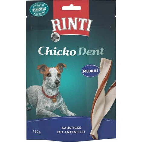 Chicko Dent mit Ente wird ausschließlich aus bissfester Rinderhaut und einer Einlage aus frischem Entenbrustfilet zubereitet, angereichert mit einem speziellen Wirkstoffkomplex für die tägliche Zahnpflege. Sie schmecken nicht nur besonders lecker, sondern sorgen mit speziellen Putzkörperchen auf Mineralstoffbasis für saubere Zähne. Rinti Chicko Dent mit Ente: extra hart – für lange KaudauerInhalt: 150 ggeeignet für: HundeFutterart: SnacksFutterform: KaustickZusammensetzung: 60% Rinderhaut, 32% Entenfleisch, Mineralstoffe (3,5% Natriumpyrophosphat), pflanzliche NebenerzeugnisseBestandteile: Rohprotein 80%, Fettgehalt 2%, Rohasche 3,5%, Rohfaser 0,2%, Feuchtegehalt 14%Zusatzstoffe: keine