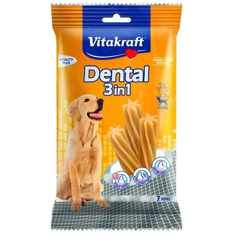 Vitakraft Dental 3in1 Zahnpflegesticks überzeugen durch ihre innovative 3in1 Wirkstoffkombination: